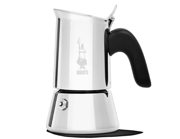 Caffettiera maniglia ergonomica con finiture antiscivolo, resistente al calore. Pomolo con nuovo design. Lo spesso acciaio delle pareti della caldaia, aumentato del 20%, conferisce solidità e robustezza al prodotto. Tutta la linea è idonea ai piani cottura ad induzione . TZ6