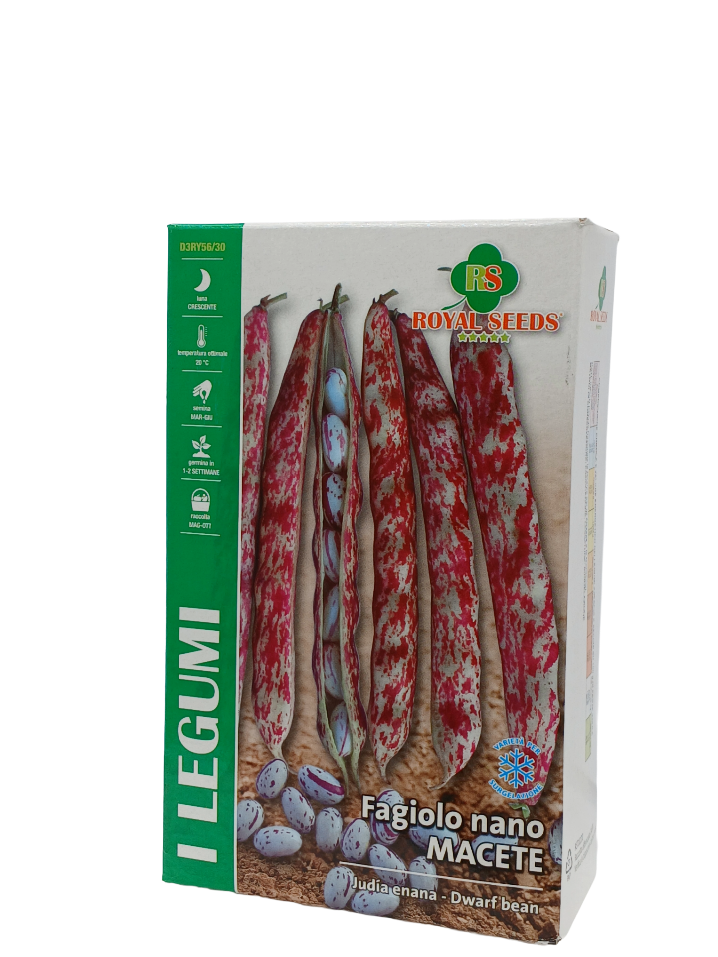 Fagiolo nano MACETE SEGMENTO: Fagiolo nano da sgrano della tipologia borlotto, adatto per la coltura a pieno campo e raccolta meccanica. PIANTA: Vigorosa con fogliame verde scuro a portamento eretto con produzioni alte e maturazione concentrata. BACCELLO: Dritto ed uniforme, lungo 16-18 cm di colore rosso intenso, contenente 7-8 grani. GRANO: Rotondeggiante, fondo color crema chiaro con striature rosso brillante. CICLO: 85-90 gg. RESISTENZA: BCMV. DESTINAZIONE: Mercato fresco, secco ed industria.
