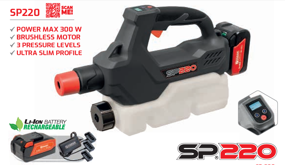 SP 220 Atomizzatore multiuso a batteria. Maneggevole e leggero. Si presta ad una vasta gamma di potenziali utilizzi.