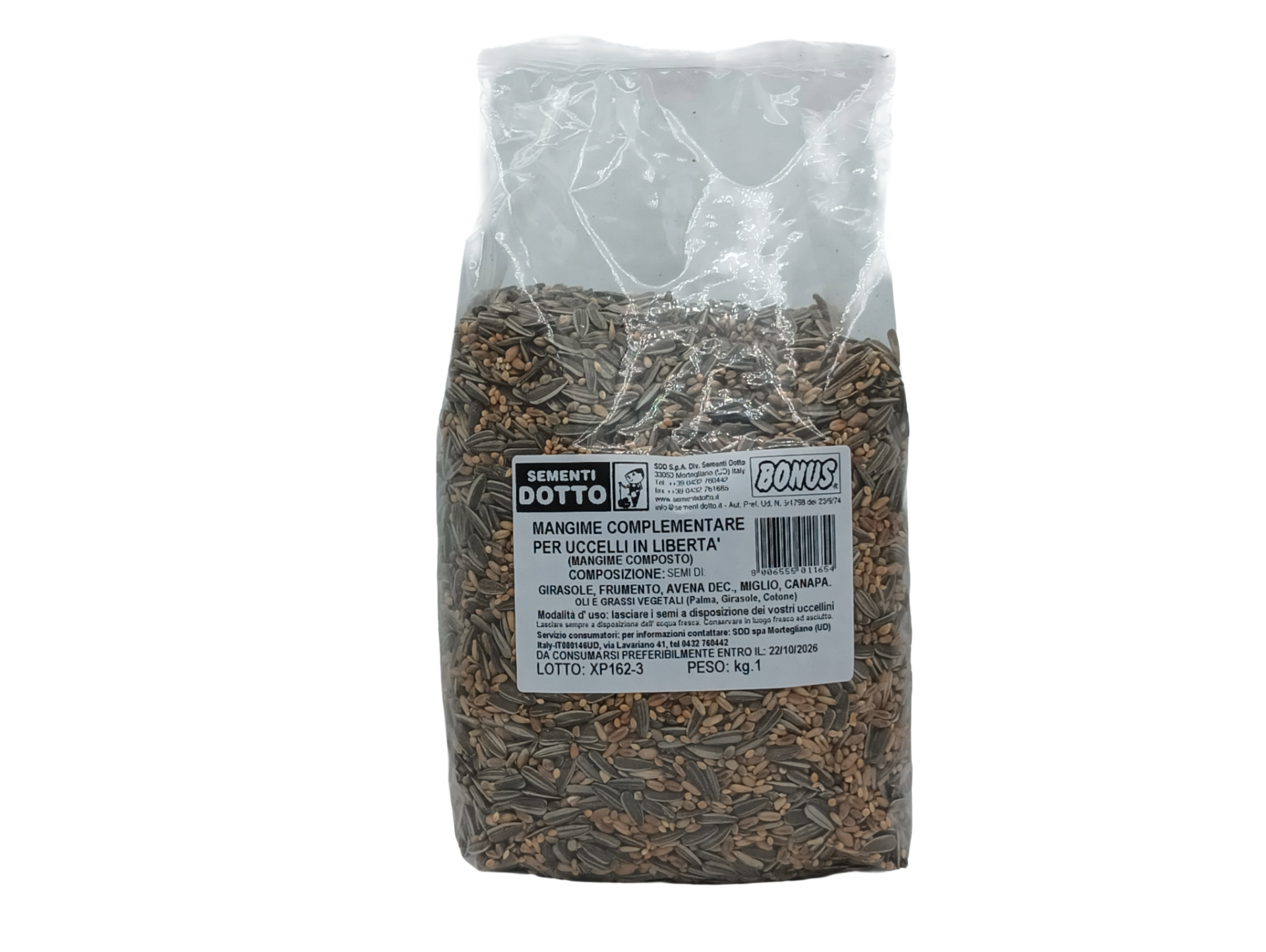 Composizione: granoturco, sorgo, semi di girasole, grasso animale, carbonato di calcio.