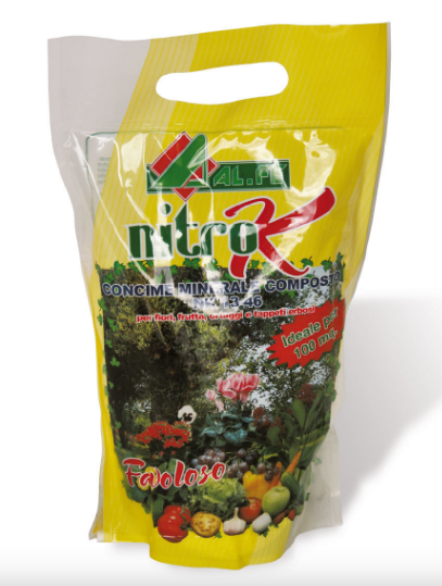 Più crescita e colore a piante e frutti.Prodotto ad elevata solubilità e prontissima assimilazione a basso titolo di cloro. Il NITRO K è un concime le cui unità fertilizzanti Azoto e Potassio sono legate chimicamente in modo tale che, quando le radici delle piante assimilano l’Azoto (elemento di facile assimilazione) debbano per forza assimilare anche il Potassio, elemento molto difficile da assorbire e di vitale importanza sia per la crescita che per la consistenza e la colorazione dei frutti e dei fiori. Ottimo per patate, pomodori, peperoni, melanzane, piante fiorite ed arboree da frutto.