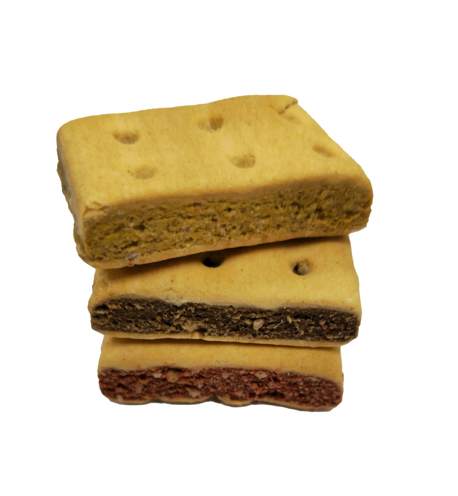 Otto Bisco Tramezzino sono i nuovi prelibati e fragranti biscotti per cani a marchio Raggio di Sole a forma rettangolare in tre diverse colorazioni. Snack sani e gustosi, con farina di pollo (6%), ideali per offrire al nostro amico a 4 zampe una divertente e gustosa ricompensa. Il confezionamento in atmosfera controllata migliora la conservazione degli aromi. Snack adatto per cani di tutte le taglie ed età.