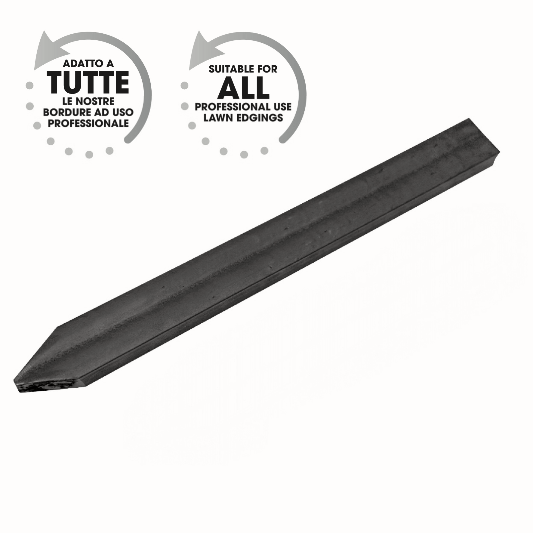 Picchetto in plastica eterogenea riciclata per le nostre bordure in plastica e in acciaio senza picchetti integrati. È un valido sostegno poiché fornisce stabilità, un solido ancoraggio e robustezza all’intero perimetro realizzato. L’elevata densità lo rende resistente a qualsiasi sollecitazione meccanica. Adatto a tutte le nostre bordure ad uso professionale!