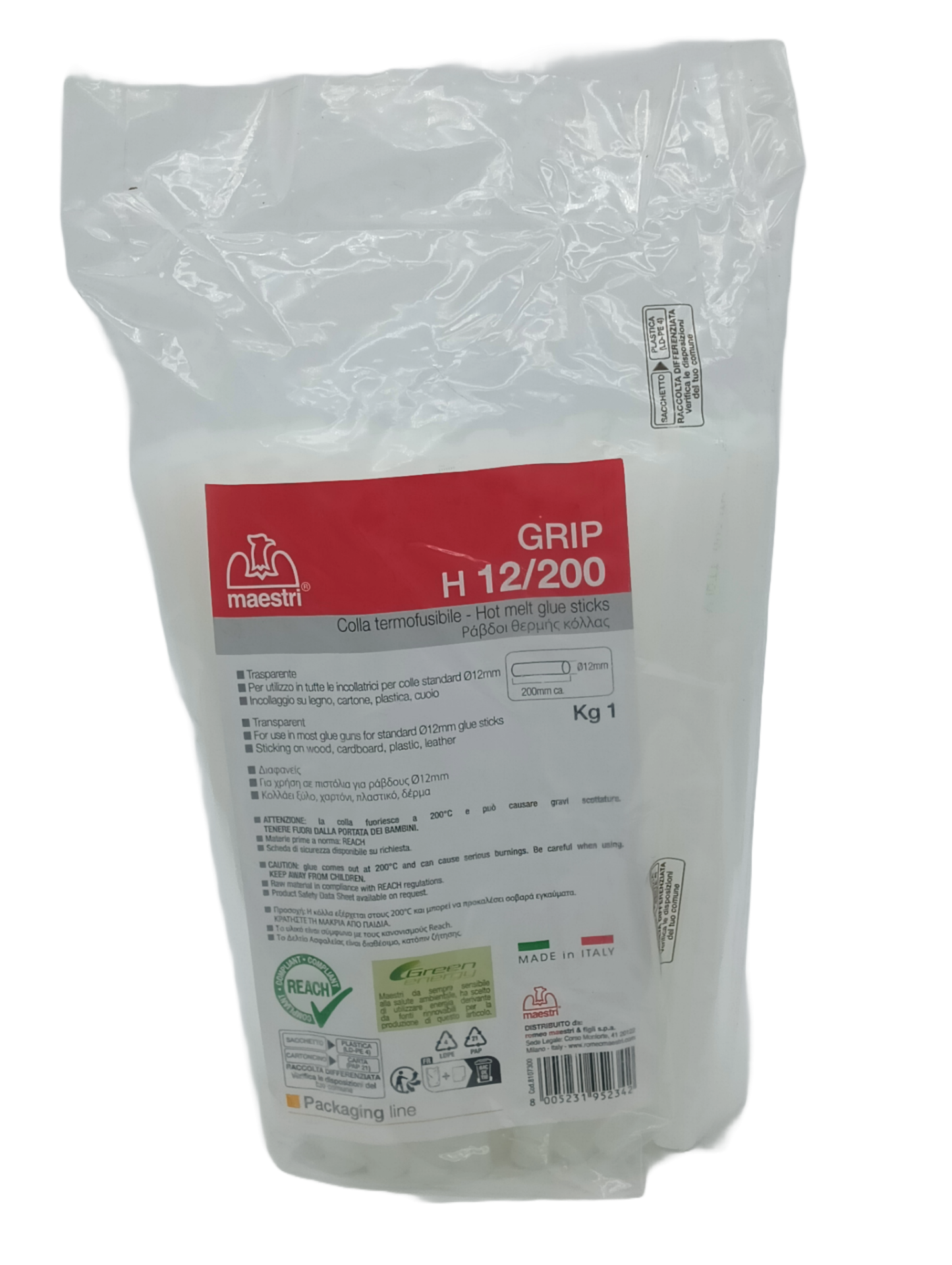 Colla in stick DIAMETRO 12MM LUNGO 19,4CM. Consigliato per legno, stoffa, metallo, carta, cartone, moquette, tappezzerie, materiali porosi e non. In una confezione da kg.1 ci sono 48 stick.
