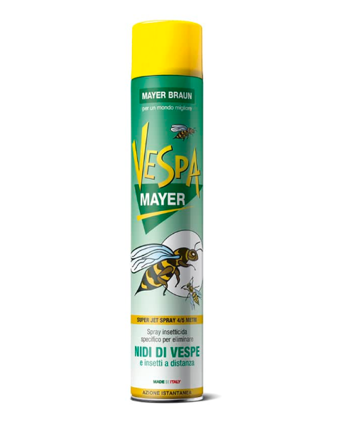 UCCIDE ISTANTANEAMENTE LE VESPE E I CALABRONI Specifico contro vespe, calabroni ed insetti volanti Dotato di speciale valvola Super-Jet, getto 4-5 metri Indispensabile per trattare i nidi più lontani e nascosti (sottotetti, davanzali,grondaie, pensiline) Massima operatività in totale sicurezza Adatto per uso esterno principio attivo Tetrametrina 0,30 g Permetrina 0,50 g Piperonil butossido 1,20 g formulazione Spray uso Esterno formato 750 ml